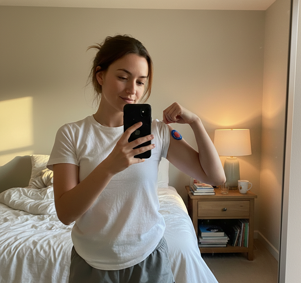 Inner wrist, upper arm, or shoulder on clean dry skin. Takes 10 seconds to apply and wears for 8 hours.